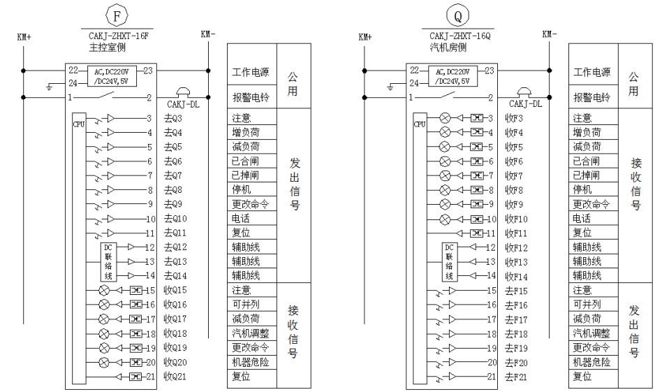 CAKJ-ZHXT-16F/Q 發(fā)電機指揮信號裝置是用于主控室與汽機房之間彼此傳送命令和機組運行狀況的設(shè)備。一套完整的指揮系統(tǒng),應(yīng)在主控室的發(fā)電機控制盤上和汽機控制盤上各裝設(shè)一臺相應(yīng)發(fā)送和接受命令的指揮信號裝置。