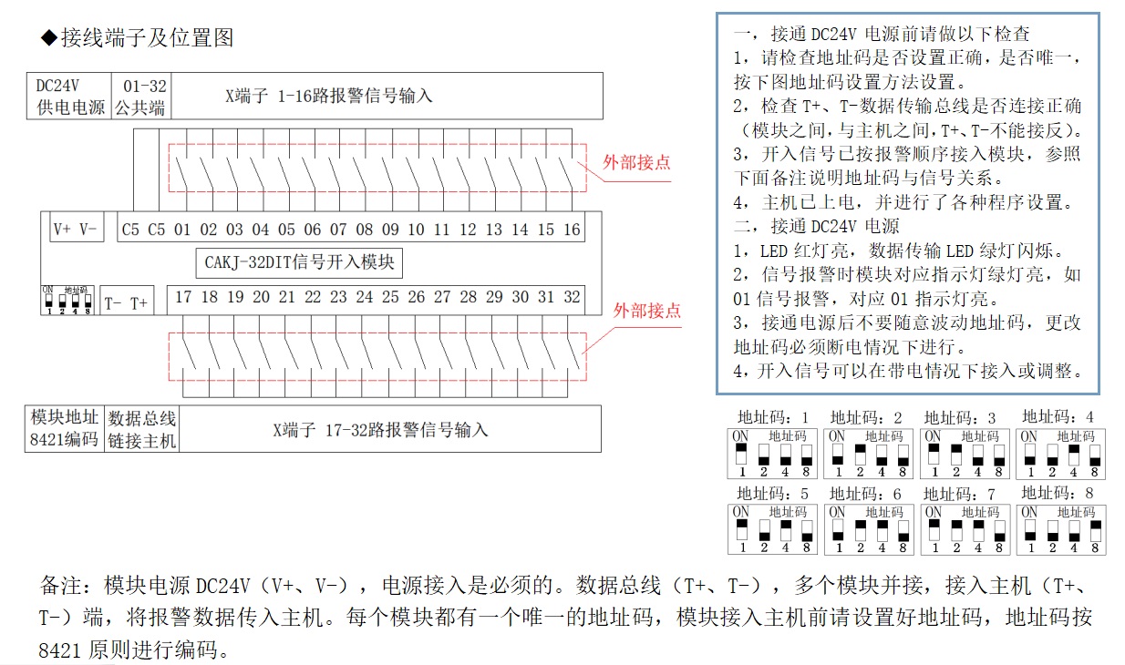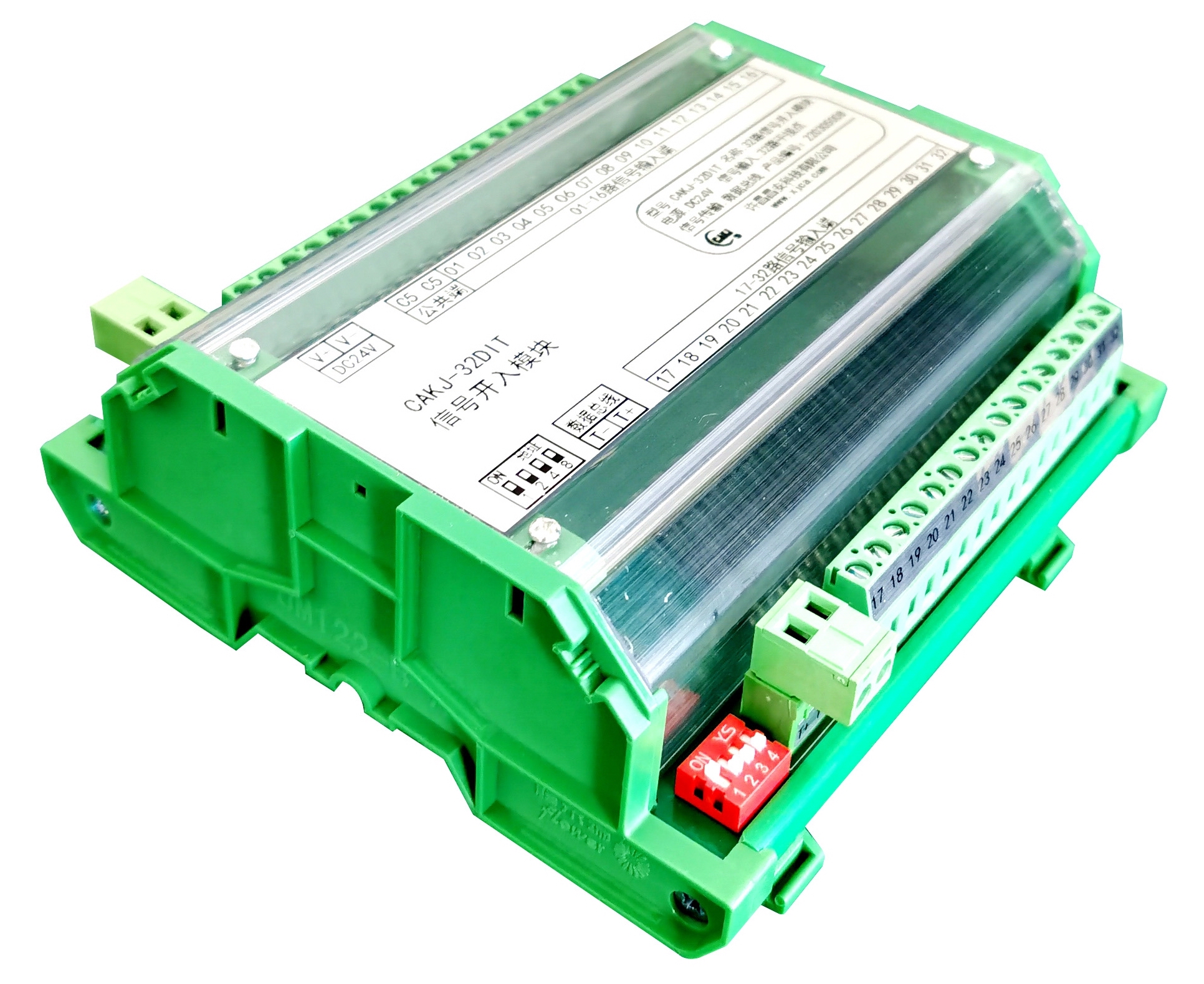 CAKJ-32DIT干接點(diǎn)信號(hào)采集模塊,接點(diǎn)信號(hào)開入,485通訊輸出。接點(diǎn)接通指示燈亮。
