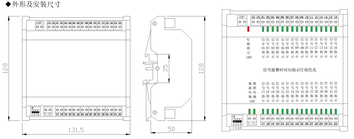 指示燈:電源、開入信號(hào)1-32、通訊